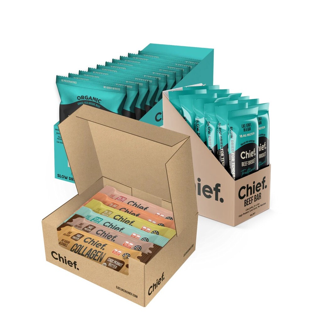 Doing our Chief Life 30 Day Challenge? Grab one box of collagen bars, one box of biltong and one box of beef bars for your snacks and to use in our recipes.